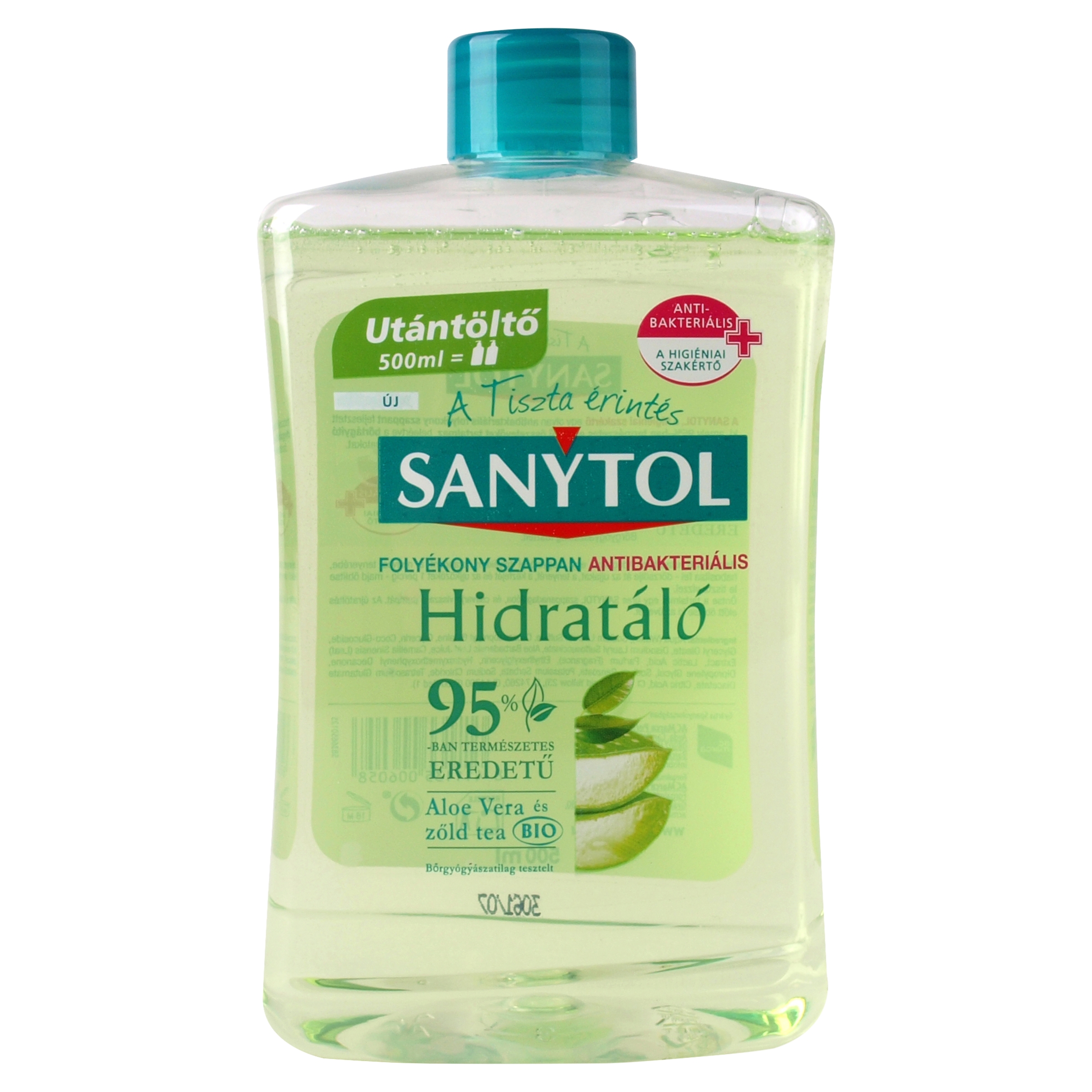 Sanytol Antibakteriális Folyékony Szappan utántöltő Zöld Tea és aloe vera 500 ml Flakon