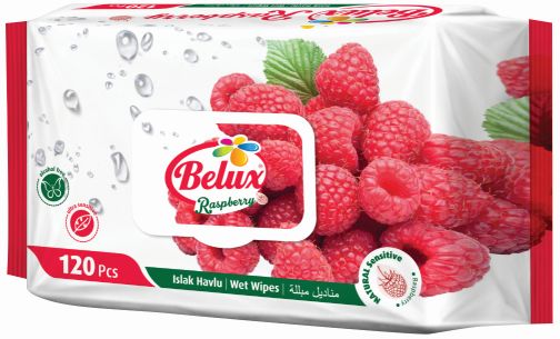 BELUX nedves törlőkendő málna (RASPBERRY) 120 db flip top